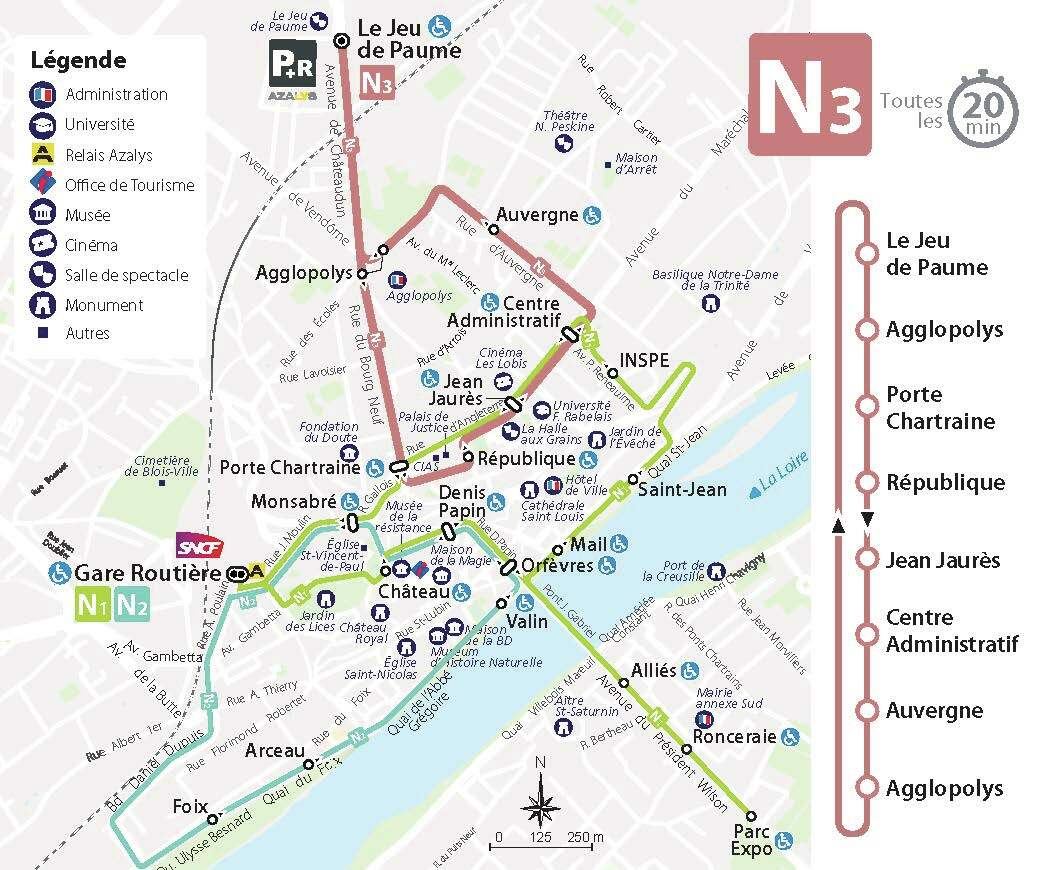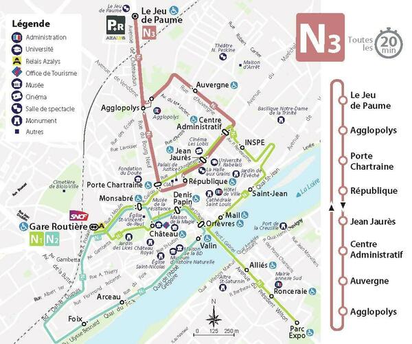 Du 3 novembre 2025 au 10 avril 2026, Agglopolys expérimente une 3e navette gratuite de centre-ville (N3) au sein du réseau Azalys, reliant le parking relais (gratuit) du Jeu de Paume aux secteurs Bourg-neuf / République.